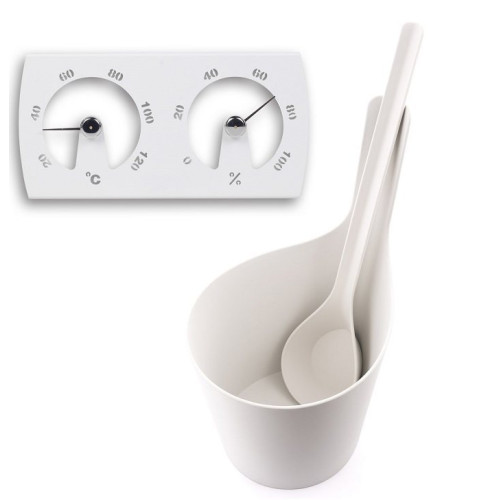 Fehér szaunavödör, szaunakanál, pára és hőmérő - Rento |